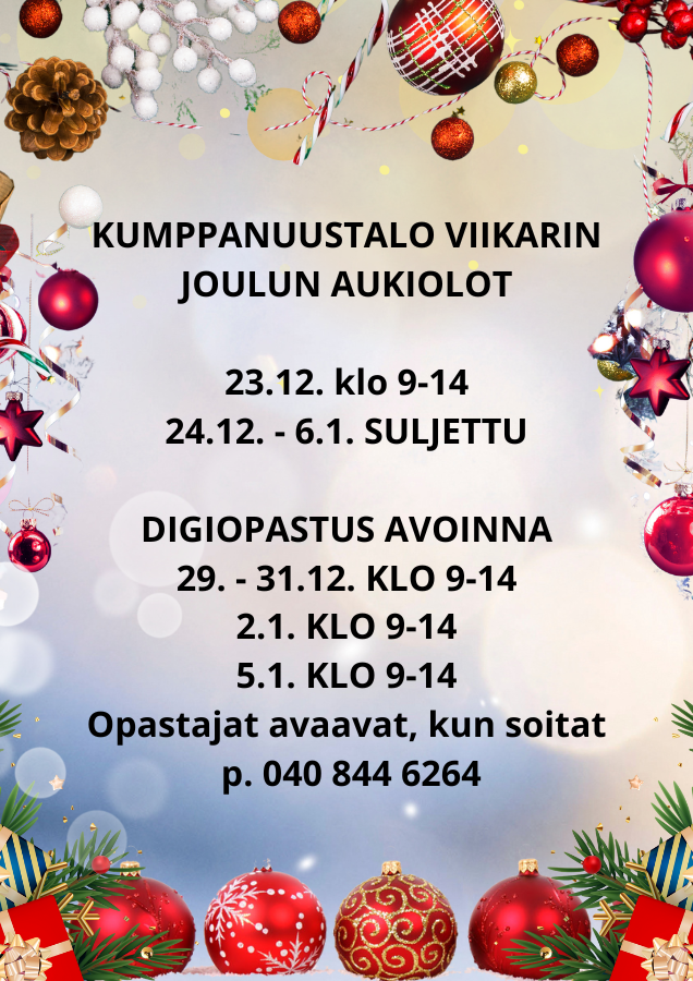 Kumppanuustalo Viikari jää joulutauolle 23.12. klo 14! Tilat käytettävissä tauon aikana tuttuun tapaan avaimella, tilavarauksen etukäteen tehneille. Digiopastus palvelee joulun välipäivinä ja ennen…