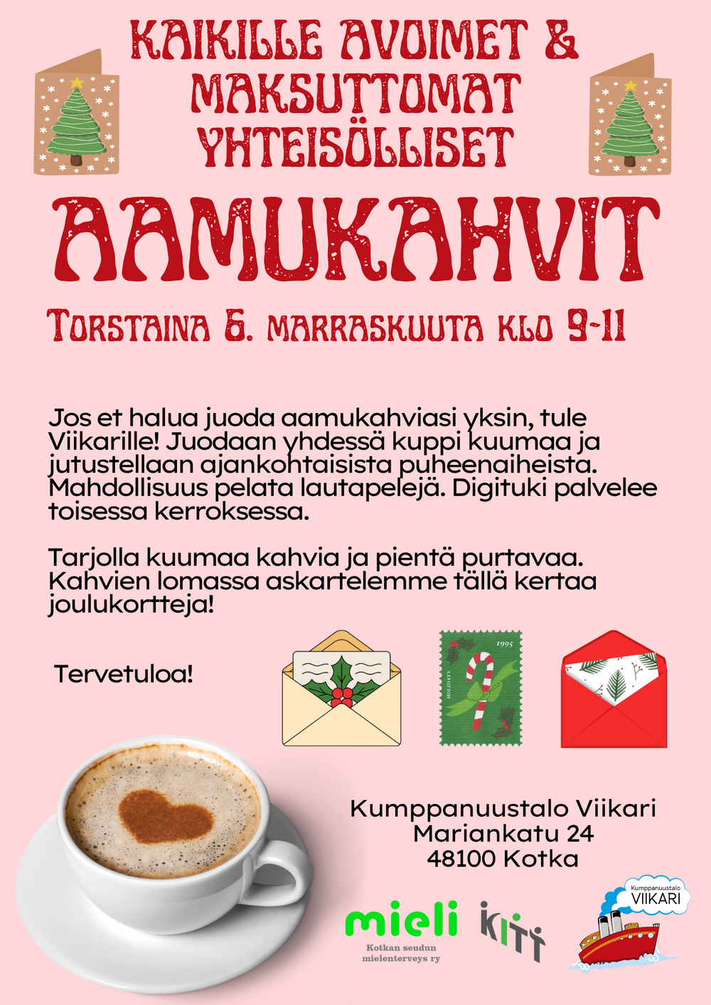 Marraskuun aamukahvien lomassa askarrellaan joulukortteja. Tervetuloa mukaan!