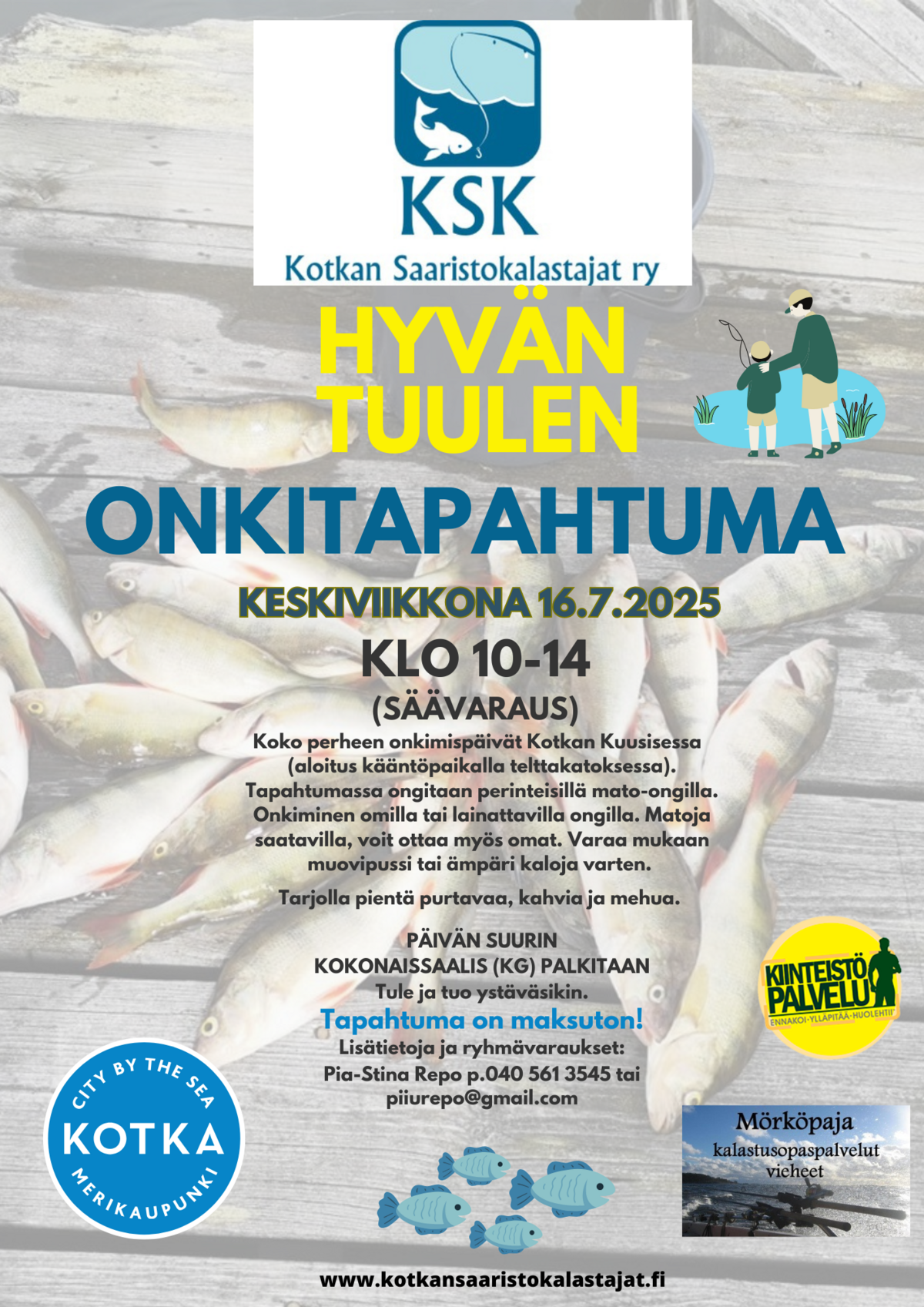 Kotkan Saaristokalastajat järjestävät maksuttoman onkitapahtuman 16.7. Kotkan Kuusisessa.