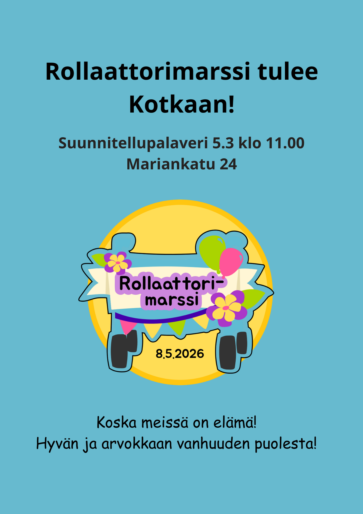 Tule mukaan suunnittelemaan miltä rollaattorimarssi 8.5 tulee Kotkassa näyttämään!