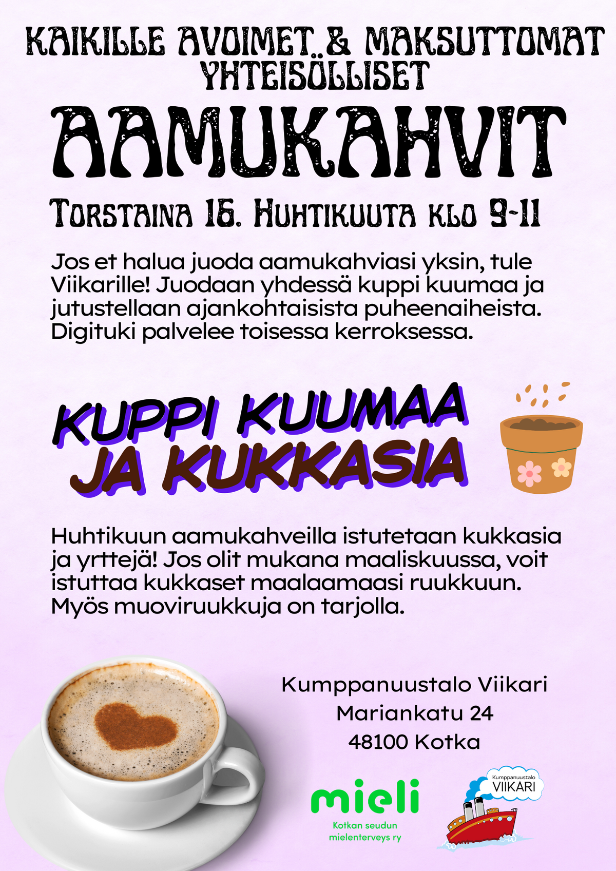 Huhtikuun aamukahveilla 16.4. klo 9-11 kahvien lomassa istutetaan kukkasia tai yrttejä!