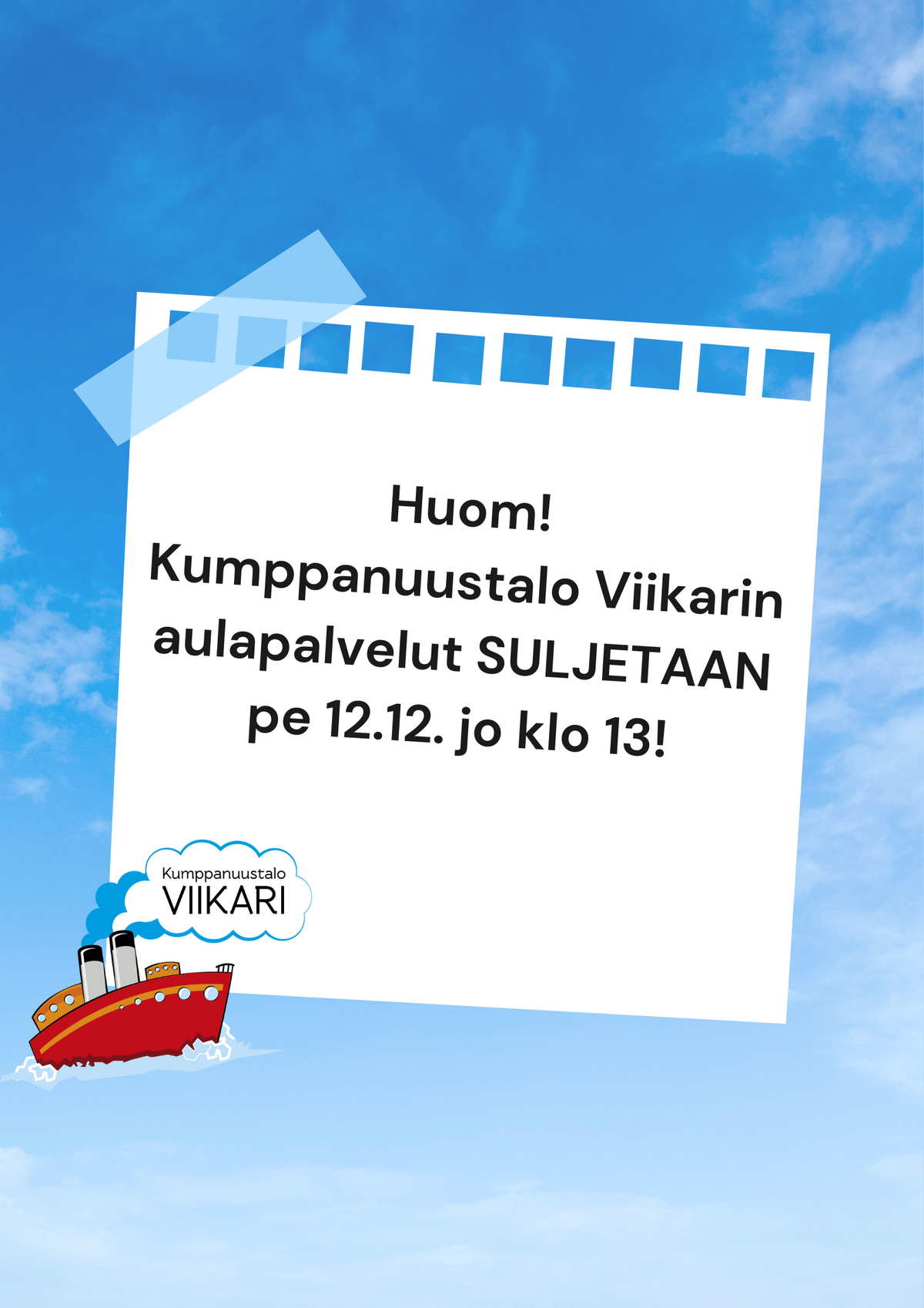 Aulapalvelut suljetaan pe 12.12. jo klo 13!