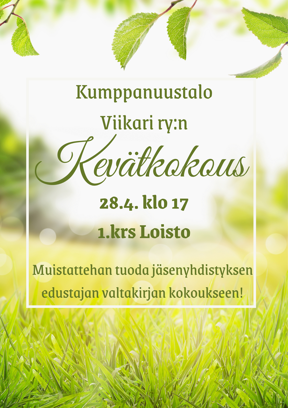 Kumppanuustalo Viikari ry:n kevätkokous 28.4. klo 17
