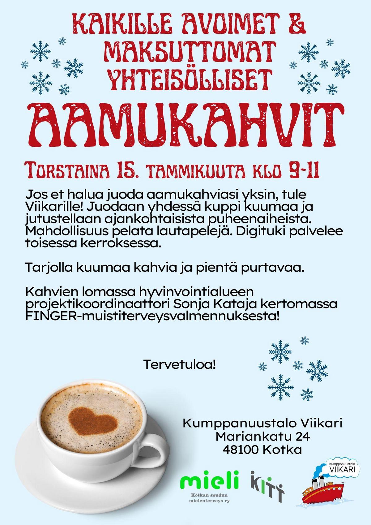 Tammikuun yhteisöllisillä aamukahveilla 15.1. klo 9-11 hyvinvointialueen Sonja Kataja kertoo FINGER-muistiterveysvalmennuksesta. Tämän jälkeen luvassa vielä Jounin tietovisa.